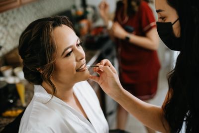Your wedding day includes full hair and makeup styling, lashes, skin prep, and a custom schedule to ensure you’re ready on time. I leave a touchup kit in case it's needed with powder, lipstick, q-tips, oil blotting sheets and a fan in case you get hot. If you’d like extended touch-up services or a second look (like a glam wave-to-updo change for the reception), we can add that on using the Concierge Service.